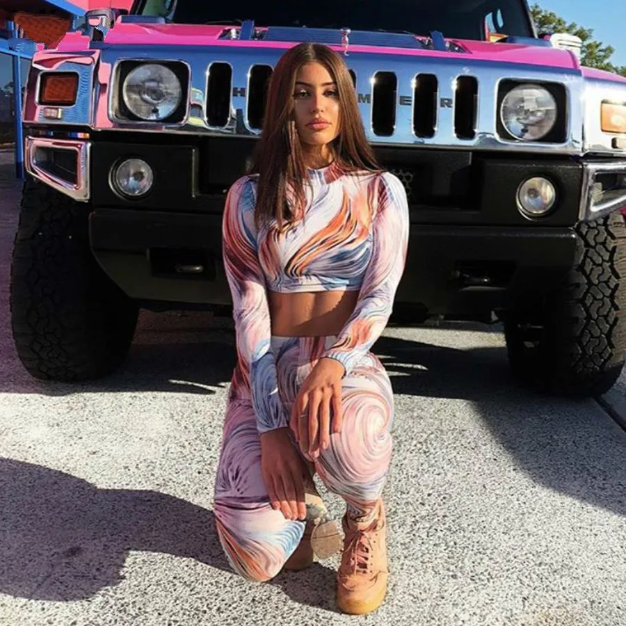 3d Striped Print Full Sleeve Turtleneck Women 2 Pieces Tracksuits Active Wear Female Sporting Fitne