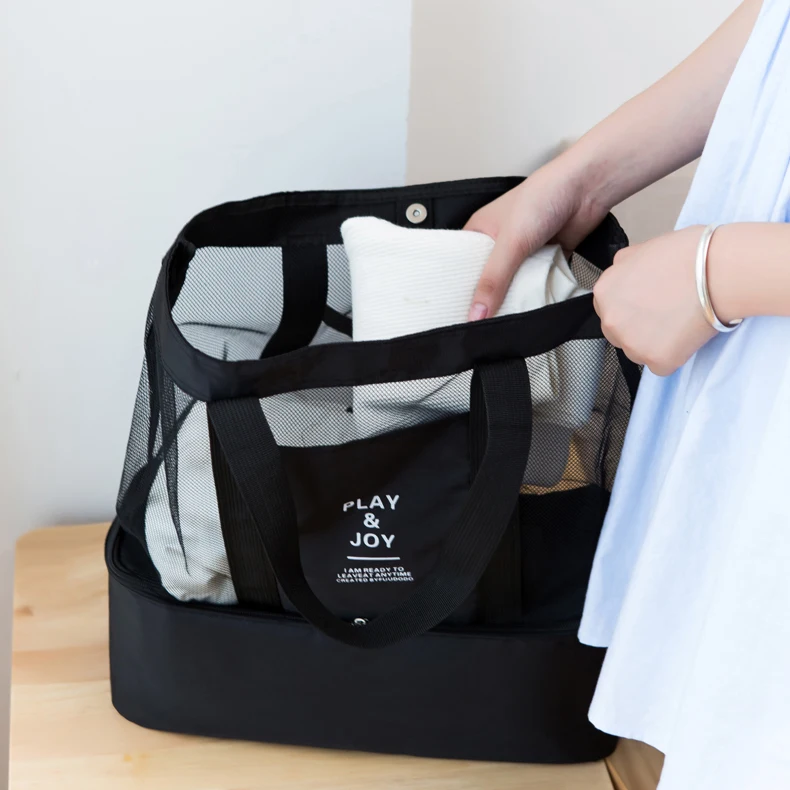 Best Quality Black Large Capacity Casual Tote Bag for Women Summer Swim Travel Fitness Handbags dry wet separati